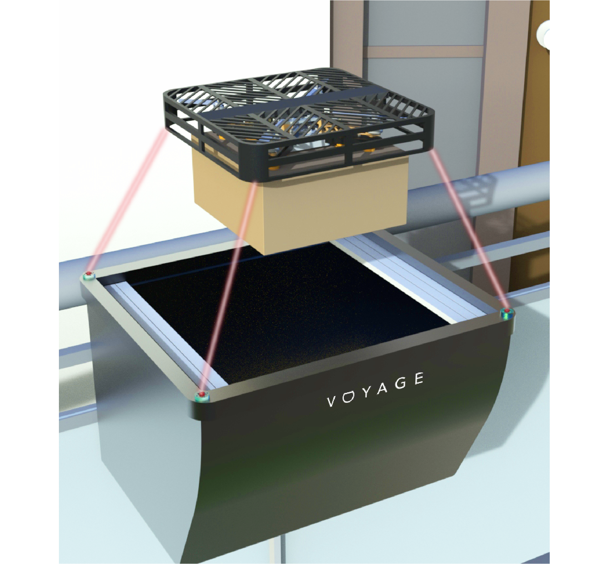 The main challenge is loading and unloading parcels into the Voyage parcel mode. With UAVs, drones can carry higher payloads and fit into the Voyage vehicle to pick up parcels. However, specific drone design and attachment mechanisms must be developed. Current delivery drones have four propellers and a bottom mechanical component for gripping parcels. To fit into the vehicle's 14x18 inch holes, drones must have minimal failure risk. A lightweight cage mitigates drone failure. Due to stacked parcels and limited grip space, suction technologies were studied. The VGC10 vacuum gripper (Onrobot, 2022) integrates onto drones, using their battery as a power source.