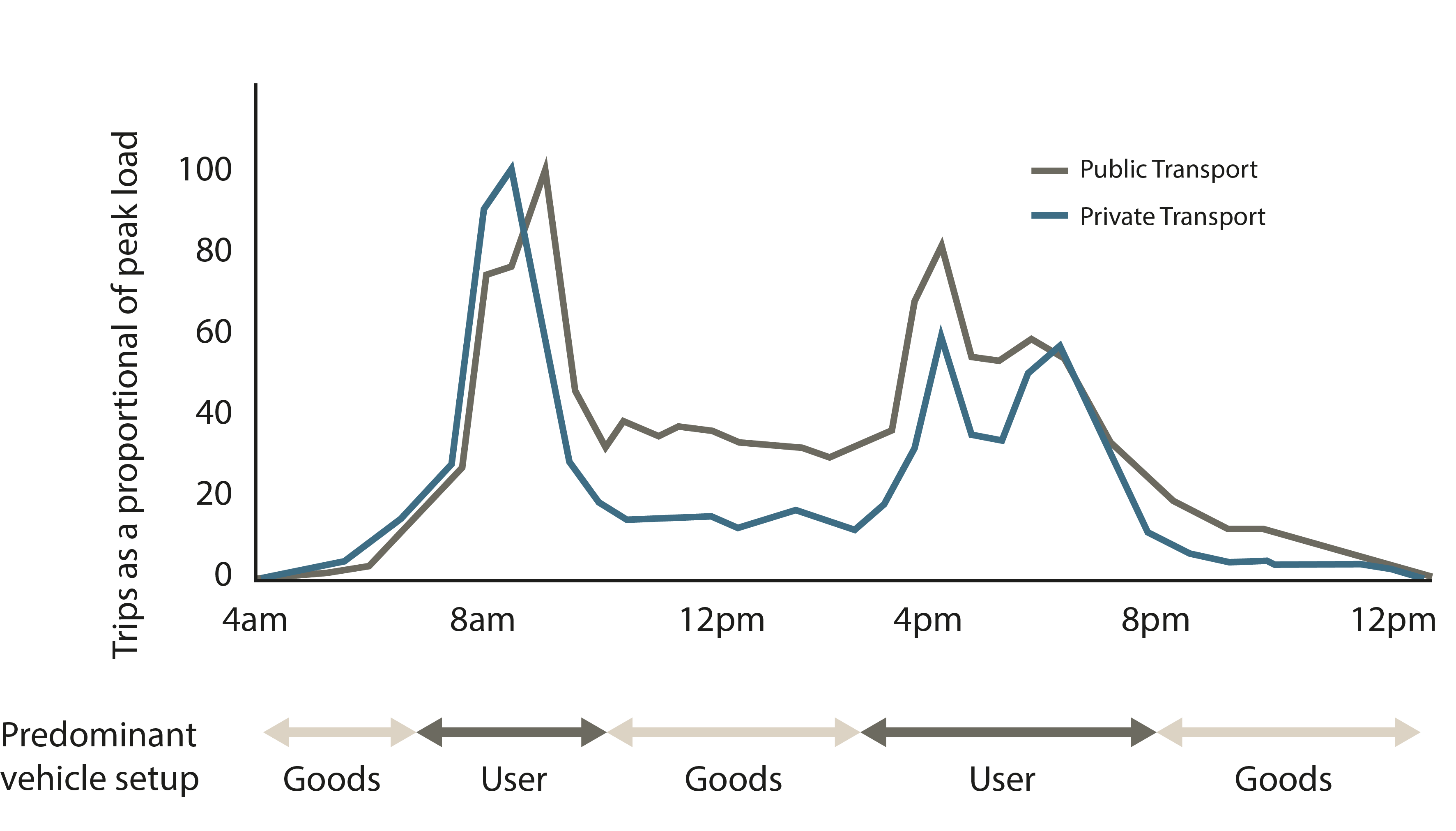 By using this system principle, the vehicles will be utilised more and therefore less dead hours. There will also be less vehicles manufactured, and the vehicle is designed to be a '2 in 1' multi-purpose vehicle, leading to environmental benefits including a reduction in lithium battery manufacturing as this is a resource likely to become scarce or even run out in 2041 (Pv Magazine, 2020). By getting private mobility users to share, there is potential to fit users from 4 separate vehicles into 1, greatly reducing congestion. By delivering goods at off peak times, the number of delivery vehicles on the road at peak times will also be decreased. It will also allow goods to be delivered outside of normal delivery driver hours, but at time when people are likely to be home.